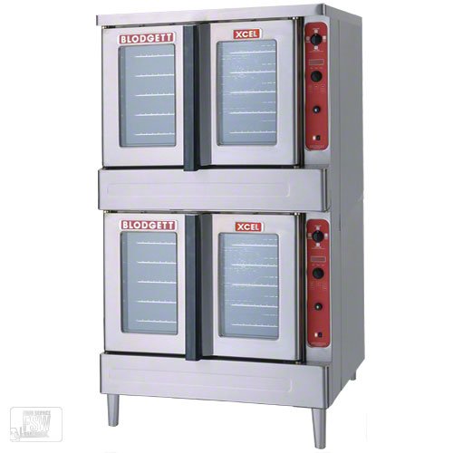 The 38" Double Section Electric Convection Oven (Mark-V-Xcel-Double) by Blodgett is an optimal choice because it is a full-size oven with a low cost of ownership. The oven is constructed from stainless steel with a full-angle iron frame and an aluminized fan for the maximum in durability. Three tubular heaters within the oven create an evenly heated convection oven interior which circulates the compartment to cook foods thoroughly and quickly. A double-sided porcelainized baking compartment is made even more efficient with rigid mineral fiber insulation to save you money. Features: Control area cooling fan, Stainless steel front, top and sides, Three tubular heaters, Solid state thermostat with manual controls, 6" high, adjustable stainless steel legs, Porcelain door handle with simultaneous door operation, Double-pane, thermal glass viewing windows . Benefits: Porcelainized crumb pan collects residue for easy cleaning, Double-sided, porcelainized compartment liner with easy-to-clean coved corners, ¾ H. P. two speed convection motor has automatic thermal overload protection. Additional Considerations: Speak with a Product Expert about additional electrical options, Depth does not include 3¼" fan motor extrusion.